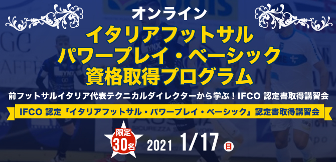 | 講座名 | 【オンライン】イタリアフットサル パワープレイ・ベーシック資格取得プログラム |